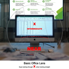 Hybrid design (Wide Angle Progressive + Office Lens) Allows users to look at Desktop computer comfortably + Occasional distance